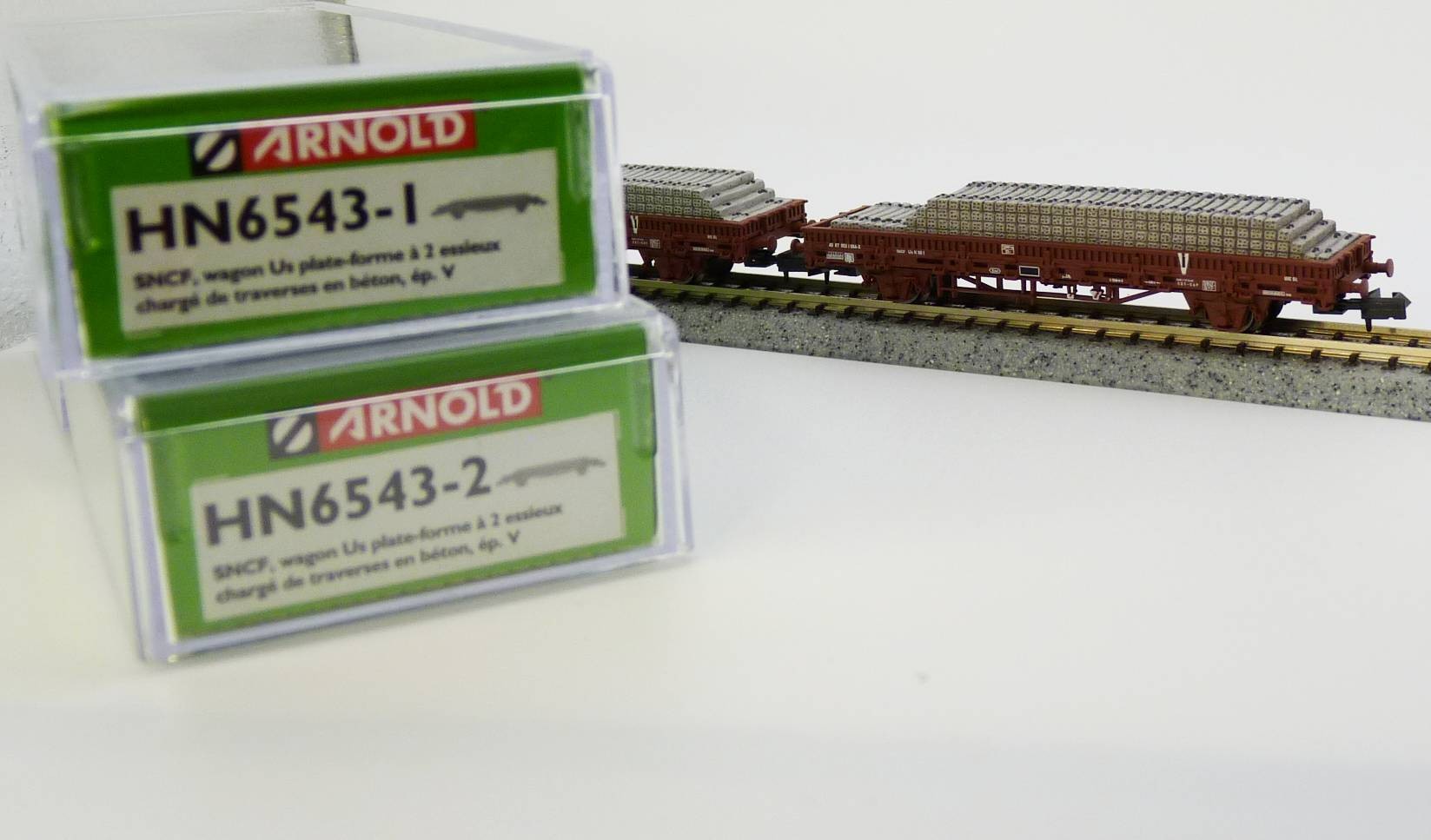 🚧 Set de 2 Wagons Plats Type "V" avec Traverses Béton SNCF - ARNOLD (HN6543)